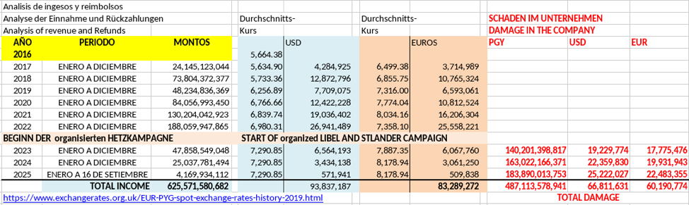 Die Zahlen wurden von der SBD Wirtschaftsprüfungs Gesellschaft (gerichtlich beeidete Sachverständige für den obersten Gerichtshof Paraguays) überprüft..